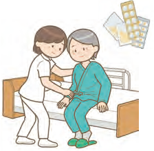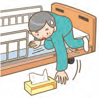入院中は生活環境や体調の変化、治療や薬の影響によって、 ご自身で思っている以上に転びやすくなります。転倒・転落により、頭蓋内出血(頭の中の出血)や、骨折をすることがあります。