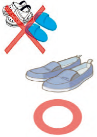 履き慣れた、滑らず、かかとの覆われている靴(運動靴・リハビリシューズ)をお持ちください。かかとは潰さずにきちんと履きましょう。