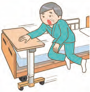 点滴スタンドやベッドサイドテーブルなど車輪がついているものを支えにすると動いて危険です。
